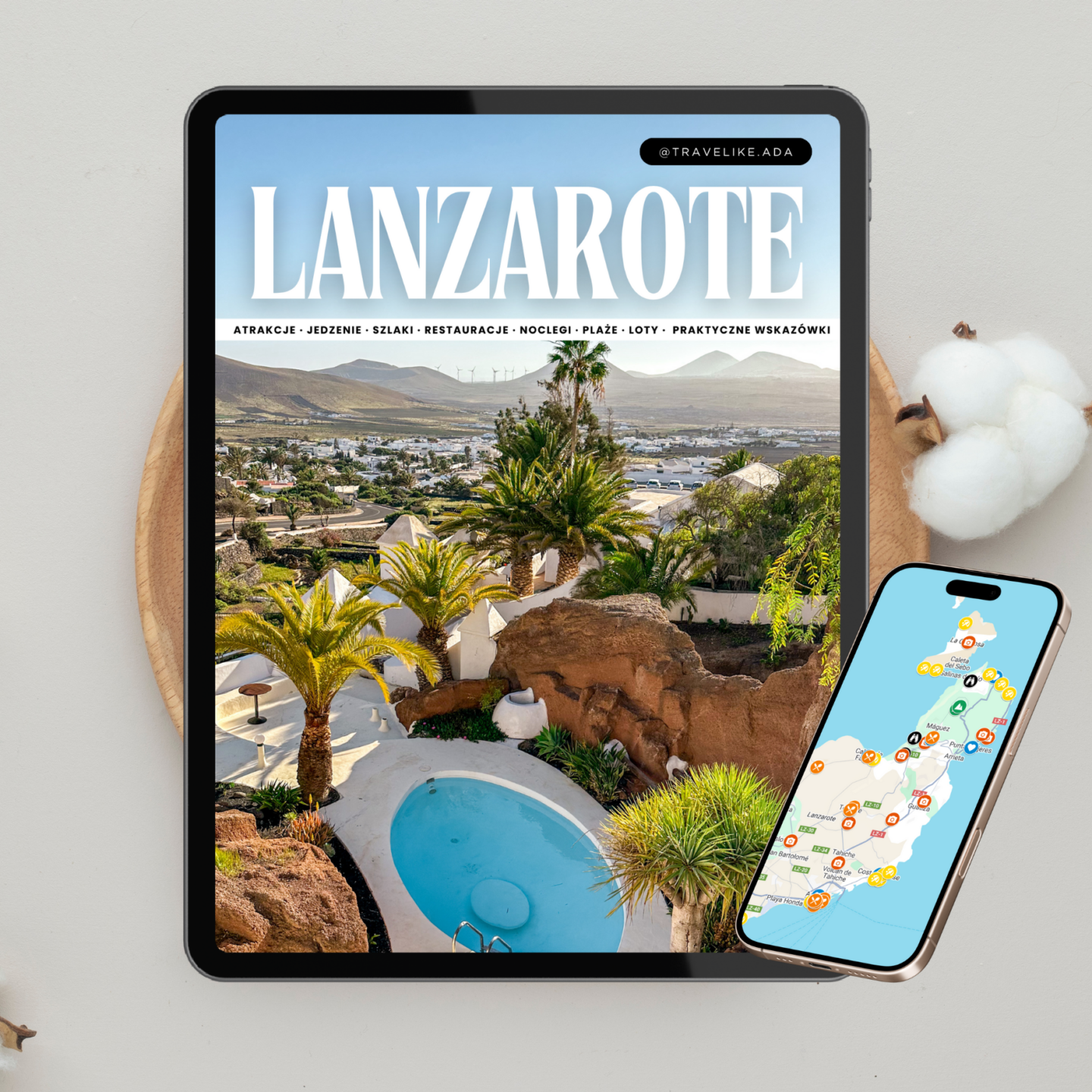 Co zobaczyć na Lanzarote i jak zaplanować podróż? Interaktywny przewodnik po Lanzarote to aż 176 stron praktycznych informacji, wskazówek i konkretów – od planowania podróży po gotowe trasy zwiedzania. W środku znajdziesz szczegółowe informacje praktyczne (loty, transport, ceny, wynajem auta), opisy najciekawszych atrakcji, najpiękniejszych plaż, malowniczych miasteczek, wulkanicznych szlaków i unikatowych miejsc, których nie znajdziesz w klasycznych przewodnikach. Do e-booka dołączona jest interaktywna mapa Google Maps z ponad 100 pinezkami podzielonymi na kategorie: atrakcje, plaże, punkty widokowe, szlaki, miasteczka, restauracje i winnice. Znajdziesz tu też rekomendacje wyjątkowych noclegów (36 propozycji), lokalnych restauracji i winnic, a także gotowe plany podróży na 3, 5 i 7 dni. Dzięki wbudowanej nawigacji i klikalnym elementom szybko znajdziesz to, czego szukasz!